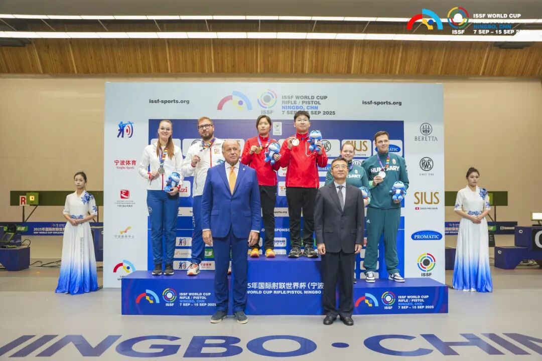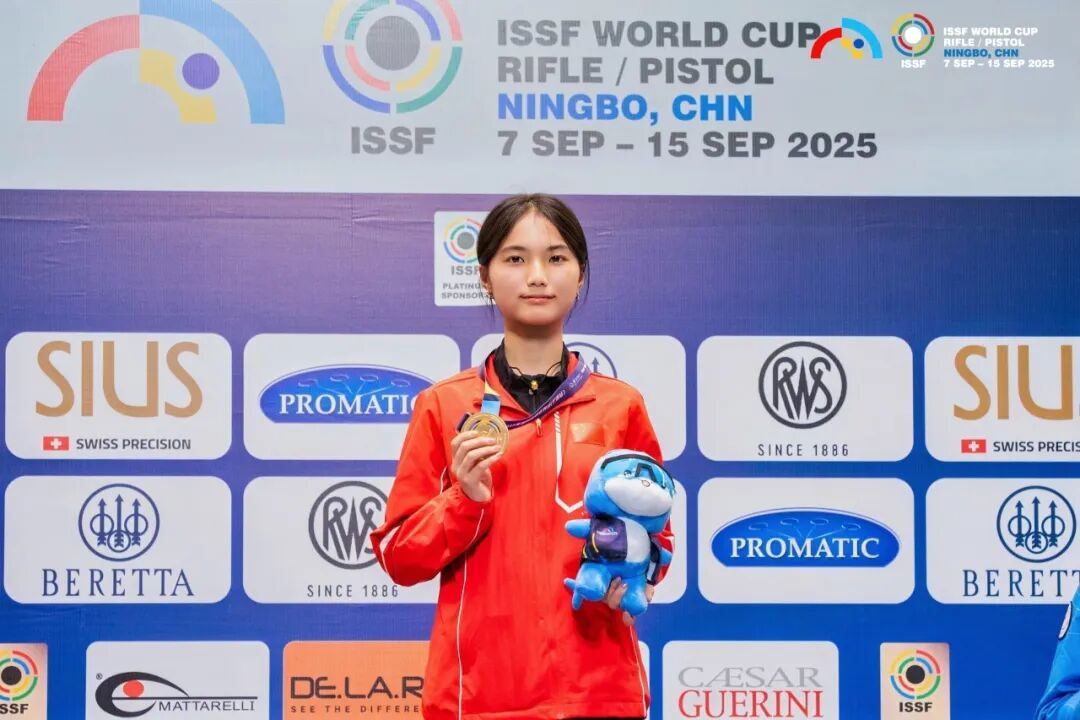 \u003c/p>\u003cp>中國射擊隊派出了由巴黎奧運會冠軍盛李豪領銜的32名選手參賽。除游昌杰(1992年出生)、朱思童(1997年出生)兩名90后選手外,其他30名選手均為00后。其中,16歲的彭鑫露和吳欣怡是最年輕的兩名選手。\u003c/p>\u003cp class=\"textAlignCenter\">\u003cimg src=\"https://x0.ifengimg.com/ucms/2025_38/34FE39A5F89411032473BD0A32388213B20F5203_size114_w1080_h720.jpg\" />\u003c/p>\u003cp>在10米氣手槍混合團體比賽中,胡凱搭檔姚千尋以17-5大勝捷克組合杜博維/謝巴洛娃奪冠,為中國隊摘得本站比賽首金。值得一提的是,在本賽季此前三站世界杯上,這對中國新秀組合已三次打進金牌決賽,并收獲1金2銀。在男子10米氣手槍比賽中,胡凱再次出擊,以總成績242.3環戰勝隊友游昌杰獲得金牌,成為本站比賽的“雙冠王”。本賽季,23歲的胡凱狀態不俗,在阿根廷布宜諾斯艾利斯站、秘魯利馬站和德國慕尼黑站均收獲了男子10米氣手槍個人項目金牌;寧波站奪冠后,胡凱也實現了世界杯“四連冠”。33歲的游昌杰首次參加世界杯賽事就登上了領獎臺,創造了個人職業生涯成績的新高。\u003c/p>\u003cp class=\"textAlignCenter\">\u003cimg src=\"https://x0.ifengimg.com/ucms/2025_38/D0B4BB05107DAE111C132DCA77FCAA871A080715_size78_w1080_h720.jpg\" />\u003c/p>\u003cp>作為中國隊唯一一名奧運冠軍選手,盛李豪的表現格外引人關注。在10米氣步槍混合團體比賽中,盛李豪和彭鑫露在資格賽就以636.9環的總成績打破資格賽世界紀錄和世界青年紀錄,可惜在決賽中他們以9-17負于挪威組合迪斯塔德/海格,遺憾獲得銀牌。在男子10米氣步槍個人項目中,盛李豪資格賽打出637.7環排名第一晉級決賽;決賽中,盛李豪以253.5環獲得銀牌。\u003c/p>\u003cp class=\"textAlignCenter\">\u003cimg src=\"https://x0.ifengimg.com/ucms/2025_38/BF0066A38918CC3D9C66AB76B21B7F264A5FAF69_size106_w1080_h720.jpg\" />\u003c/p>\u003cp>\u003cimg src=\"https://x0.ifengimg.com/ucms/2025_38/7AABE40A13ADC824845C2BB529EDFB7CEF6B3E50_size71_w1080_h719.jpg\" />\u003c/p>\u003cp>\u003cimg src=\"https://x0.ifengimg.com/ucms/2025_38/50F759B6EA0877EF4EA063EF872C6EF596C8239D_size55_w1080_h719.jpg\" />\u003c/p>\u003cp>\u003cimg src=\"https://x0.ifengimg.com/ucms/2025_38/D53C7A835ECB66BDA369107FFA03FB2F3242877D_size91_w1080_h720.jpg\" />\u003c/p>\u003cp>在其他項目中,中國選手也有出色發揮:女子10米氣步槍決賽中,彭鑫露以總成績255.3環奪得金牌并打破該項目決賽世界紀錄;女子10米氣手槍決賽中,姚千尋以總成績242.6環、0.1環之差收獲銀牌;女子25米手槍決賽中,肖嘉芮萱最終以33中獲得銅牌,寧波運動員張悅悅在家鄉首秀中取得第四名。\u003c/p>\u003cp class=\"textAlignCenter\">\u003cimg src=\"https://x0.ifengimg.com/ucms/2025_38/9C45125E6C48D374628F37F82159136760EB8C0F_size93_w1080_h720.jpg\" />\u003c/p>\u003cp class=\"textAlignCenter\">\u003cimg src=\"https://x0.ifengimg.com/ucms/2025_38/38C0CE2D4783DF0989473C7F5EEDBE10664A6AD8_size73_w1080_h719.jpg\" />\u003c/p>\u003cp class=\"textAlignCenter\">\u003cimg src=\"https://x0.ifengimg.com/ucms/2025_38/73BE9222EE2CAD25C15A7F5D06896B9F4834BA29_size83_w1080_h724.jpg\" />\u003c/p>\u003cp class=\"textAlignCenter\">\u003cimg src=\"https://x0.ifengimg.com/ucms/2025_38/B7475F8C71630F6AC0FD65411645EFC7DBE2F2FF_size70_w1080_h720.jpg\" />\u003c/p>\u003cp class=\"textAlignCenter\">\u003cimg src=\"https://x0.ifengimg.com/ucms/2025_38/CEC3314D83E61B22C6B31DB0E188D109253CFA33_size122_w1080_h719.jpg\" />\u003c/p>\u003cp>而其他國家和地區的選手也有精彩發揮。女子25米手槍決賽中,韓國選手延續了在該項目上的集團優勢,巴黎奧運會冠軍梁智仁和隊友吳藝珍分別以39中和37中包攬金銀牌。男子10米氣步槍決賽中,意大利選手薩拉佐不僅力壓盛李豪奪冠,還以255環打破了盛李豪保持的決賽世界紀錄。印度選手辛格在女子10米氣手槍項目決賽中,以0.1環的優勢險勝姚千尋奪冠。此外,在男子25米手槍速射項目中,德國選手彼得以34中獲得冠軍;捷克選手普利瓦拉特斯基以465.3環獲得男子50米步槍三姿比賽冠軍。\u003c/p>\u003cp>\u003cstrong style=\"text-align: center; text-indent: 28px;\">賽事組織:東道主寧波獲好評\u003c/strong>\u003c/p>\u003cp>\u003cspan style=\"text-indent: 28px;\">近年來,寧波先后承辦過女排奧運資格賽、羽毛球亞錦賽等國際賽事,擁有豐富的體育賽事舉辦經驗。作為東道主,這是寧波首次承辦國際射聯世界杯分站賽事。\u003c/span>\u003c/p>\u003cp>\u003cimg src=\"https://x0.ifengimg.com/ucms/2025_38/A4D3E0E75ACB64780D05425A513B61E69C62696A_size123_w1080_h720.jpg\" />\u003c/p>\u003cp>\u003cimg src=\"https://x0.ifengimg.com/ucms/2025_38/917D4F7F4936E428FC570E6BEFE526B95BC04709_size124_w1080_h720.jpg\" />\u003c/p>\u003cp>\u003cimg src=\"https://x0.ifengimg.com/ucms/2025_38/076A80E36A4A08ECB7A6779BDCAE56E97A396970_size109_w1080_h720.jpg\" />\u003c/p>\u003cp>本次賽事,寧波在開幕式上的《群獅賀喜》《魚化龍》《越瓷風》三個表演節目,充分展示了中國傳統文化和寧波本土特色。作為賽事的主場館,寧波奧體中心軟硬件設施齊全、功能完備,經過改造后為運動員提供了良好的比賽環境。各國運動員、教練員及協會官員反饋積極,對賽事組委會在交通、住宿等方面的工作評價頗高。英國教練員及日本射擊聯合會秘書長藤井渡在賽后均留下了熱情洋溢的感謝信。\u003c/p>\u003cp class=\"textAlignCenter\">\u003cimg src=\"https://x0.ifengimg.com/ucms/2025_38/0DF3937A58CB52C390C99D4AEB3242B511B6F7DD_size190_w564_h416.png\" />\u003c/p>\u003cp>日本射擊聯合會秘書長藤井渡對組委會表示感謝\u003c/p>\u003cp>為擴大比賽的影響力,主辦方通過寧波發布、甬派、寧聚、寧波