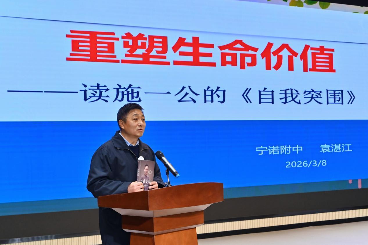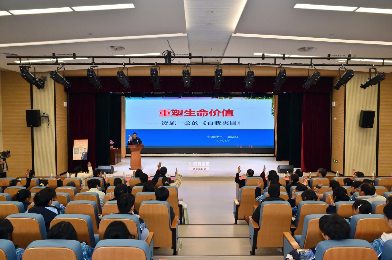 \u003c/p>\u003cp>\u003cimg src=\"https://x0.ifengimg.com/ucms/2026_11/D3CD22C55C89DEA37A8BA8E06B26F4E638ACF8DC_size89_w1267_h842.jpg\" />\u003c/p>\u003cp>過去21天里,中國科學院院士、西湖大學校長施一公的這本書從紙頁間走向全市中小學生的生活——走進家庭書房、校園課堂、深夜臺燈下,甚至跨越山海抵達兩千公里外的涼山。這不是一場轟轟烈烈的讀書運動,而是一場關于閱讀如何悄然滲透進日常的溫柔敘事。\u003c/p>\u003cp>\u003cstrong>一位共讀母親的“自我突圍”\u003c/strong>\u003c/p>\u003cp>站在臺上,鄞江中學學生邵弋函的媽媽,手心還在冒汗。她本不善言辭,更害怕當眾講話。當老師邀請她來分享閱讀體會時,她的第一反應是拒絕?!拔倚睦镆恢痹诖蚬模覜]有上臺經(jīng)驗,我肯定會緊張,到時候詞不達意怎么辦?要不還是算了。”\u003c/p>\u003cp>就在準備拒絕的那一刻,她想起過去21天,自己每晚陪女兒讀的那本書——施一公的《自我突圍》。那些夜晚,她一遍遍地對女兒說:做人要勇敢,遇到困難別退縮,這就叫自我突圍。\u003c/p>\u003cp>“道理說給孩子聽,輪到我自己,我卻想往后躲。那我怎么給孩子做榜樣?”正是這個念頭,讓她咬咬牙,站上了臺?!皩ξ襾碚f,今天站在這里,不是來講什么大道理,而是我自己真真正正的一次自我突圍?!盶u003c/p>\u003cp>她說,這21天最大的收獲,是明白了一個樸素的道理:最好的教育,不是跟孩子講多少道理,而是你自己活成想成為的樣子。你勇敢,孩子就學著勇敢;你堅持,孩子就不會輕易放棄。\u003c/p>\u003cp>臺下,她的女兒邵弋函正拿著設備,記錄媽媽的高光時刻。\u003c/p>\u003cp>\u003cimg src=\"https://x0.ifengimg.com/ucms/2026_11/7AD1B1540BC59A89C631FD4C91FAB57D5DA8A7C2_size157_w1267_h842.jpg\" />\u003c/p>\u003cp>\u003cstrong>最好的教育資源其實是父母\u003c/strong>\u003c/p>\u003cp>活動現(xiàn)場,施一公先生發(fā)來視頻表示祝賀。他在視頻中表示:“文字記載是人類文明的傳承。讀書能夠讓人博采眾長,如果再加上自己的獨立思考與思辨,就能將前人的經(jīng)驗總結逐漸內(nèi)化為自己的思維判斷,最終成為自身價值觀和世界觀的一部分,它會讓你變得更智慧、更通達?!盶u003c/p>\u003cp>在專家講座中,全國著名語文特級教師袁湛江將目光投向施一公的成長歷程。他指出,《自我突圍》這本書最值得家長細讀的,并非施一公后來的輝煌成就,而是他那只活了五十多歲的父親——施懷林。\u003c/p>\u003cp>\u003cimg src=\"https://x0.ifengimg.com/ucms/2026_11/EE223FCC2807891146D1EF5169BC1F1E321ED999_size137_w1267_h842.jpg\" />\u003c/p>\u003cp>施懷林把自己活成了一個無所不能的人。他背著糞筐和農(nóng)民一起早起撿糞,用粗糧做出精細的美食,給全村人打家具、做衣服、理發(fā),還教村里的孩子唱戲唱歌。這個家庭雖然物質(zhì)貧乏,卻每天都有歌聲和笑聲。\u003c/p>\u003cp>“這本書與其說是給學生寫的勵志書,我更傾向于認為,它是寫給家長的,告訴我們?nèi)绾卧谀婢持信囵B(yǎng)孩子強大的內(nèi)心。”袁湛江在分享中反復強調(diào)這一觀點。\u003c/p>\u003cp>\u003cimg src=\"https://x0.ifengimg.com/ucms/2026_11/5D7FA5FE1F426C7E669A0361BE060AEFC9A62905_size90_w1267_h843.jpg\" />\u003c/p>\u003cp>\u003cstrong>跨越山海的甬涼共讀\u003c/strong>\u003c/p>\u003cp>據(jù)了解,本次共讀活動包括線上共讀、親子共讀、師生共讀和甬涼共讀。在《自我突圍》一書的百度介紹中,本次活動也成為書籍的介紹內(nèi)容。\u003c/p>\u003cp>在四川涼山鹽源縣中學校,高一學生彭彧瀅最初接到21天共讀任務時,心里直打鼓?!拔以詾槲乙欢ㄍ瓿刹涣?。”她在視頻分享中坦言。但翻開《自我突圍》后,她很快被吸引了。\u003c/p>\u003cp>吸引她的不是施一公耀眼的頭銜,而是書中那些坦誠的文字。“施一公先生通過寫自己的人生經(jīng)歷,告訴了我們?nèi)说囊簧⒎强偸且环L順的。人總要直面困難,不斷試錯,最終才能真正地成長?!彼f。\u003c/p>\u003cp>21天里,彭彧瀅每天堅持閱讀打卡。有時寫作業(yè)、有時家里有事,但她從沒想過放棄。書中那句“決定上限的不是天賦,而是你愿意付出多少努力”,成了她堅持的動力。“這句話讓我很有感觸。高一學習雖然辛苦,但每一次堅持,都是在突破自己。”\u003c/p>\u003cp>\u003cimg src=\"https://x0.ifengimg.com/ucms/2026_11/6063716189A392B7CDE64FE5D5B17FF3235CF568_size53_w640_h854.jpg\" />\u003c/p>\u003cp>和她一起完成這場閱讀挑戰(zhàn)的,還有幾十位鹽源的同學。他們有的在火塘邊讀,有的在走親訪友的間隙讀,有的深夜做完家務后翻開書。沒有人監(jiān)督,但每個人都堅持了21天。\u003c/p>\u003cp>“讀完這本書,讓我懂得真正的成長,就是不斷與過去的自己較量。”彭彧瀅說:“不必羨慕別人的優(yōu)秀,只要腳踏實地認真對待每一天,就已經(jīng)在慢慢成長?!盶u003c/p>\u003cp>在鹽源中學的語文老師看來,這次共讀的意義遠不止于讀完一本書?!昂⒆觽兊谝淮我庾R到,原來兩千公里外的寧波,也有同齡人和他們讀同一本書、思考同一個問題。這種‘連接感’,是平時課堂上很難給到他們的?!盶u003c/p>\u003cp>3月8日晚上,鹽源中學的師生們通過視頻觀看了現(xiàn)場活動。\u003c/p>\u003cp>跨越兩千公里,一本書,讓寧波與涼山的少年們在同一片星空下,完成了各自的“突圍”。正如施一公在書中所寫:“我們深知道阻且長,但我們堅信未來,我們終將不辱使命?!盶u003c/p>\u003cp>(鳳凰網(wǎng)寧波 沈含玲 通訊員 傅衛(wèi)平 鄭旭姣)\u003c/p>