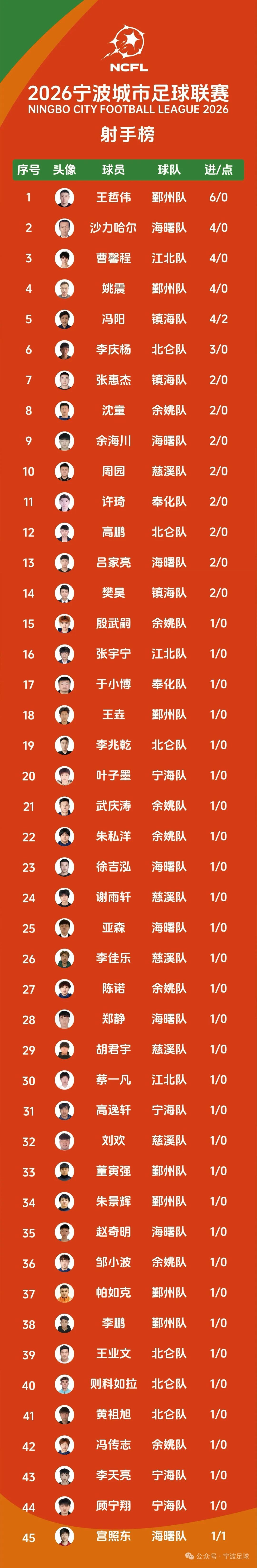 for (var i = 0,len = adKeys.length; i 3月14日-15日,2026年寧波城市足球聯賽半決賽首回合舉行。最終,海曙隊3:1主場戰勝鄞州隊,北侖隊坐鎮主場與江北隊戰成1:1。 半決賽首回合戰報 半決賽次回合預告 來源:寧波體育