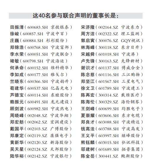 寧波40家上市公司董事長承諾: 不減持本公司股票