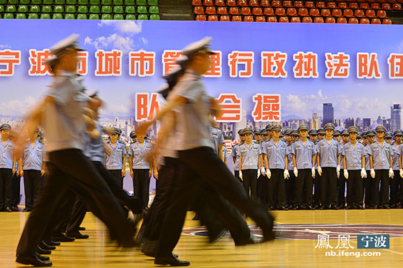 7月15日下午,寧波市城市管理行政執(zhí)法隊伍隊列會操比武在市雅戈爾體育館舉行。本次隊列會操比武,全市各縣(市)區(qū)有13支執(zhí)法人員隊伍參賽,是為了檢驗城管執(zhí)法隊伍日常嚴(yán)格訓(xùn)練、嚴(yán)格管理的成果。