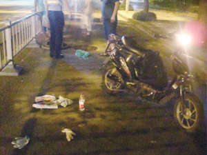 繞過施工人員騎出去不到50米,在一處路燈被遮住的樹蔭下,顧師傅沒注意還有一處打開的窨井蓋,結果哐當一下從電動自行車上栽了下來,狠狠摔在路上。