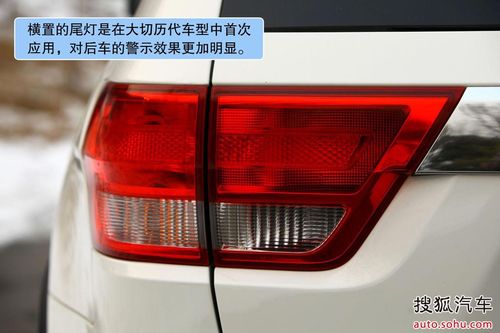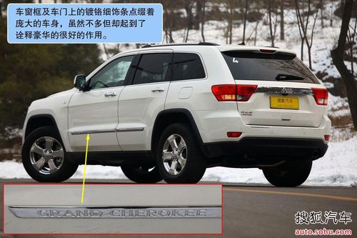 另外,車窗框及車門上的鍍鉻細(xì)飾條點(diǎn)綴著龐大的車身,雖然不多但卻起到了詮釋豪華的很好的作用。橫置的尾燈是在大切歷代車型中首次應(yīng)用,對(duì)后車的警示效果更加明顯。后風(fēng)擋擾流小翼的增加更多的作用是在裝飾,這同樣體現(xiàn)著jeep對(duì)細(xì)節(jié)上的用心。
